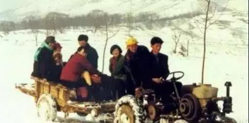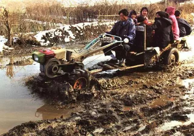 除了騎車,就數這拖拉機快了,犁地的輪胎,連防滑鏈都省了。走親神器,底盤高越野性強,適應各種路況通行!這照片有種老宣傳海報的意思!