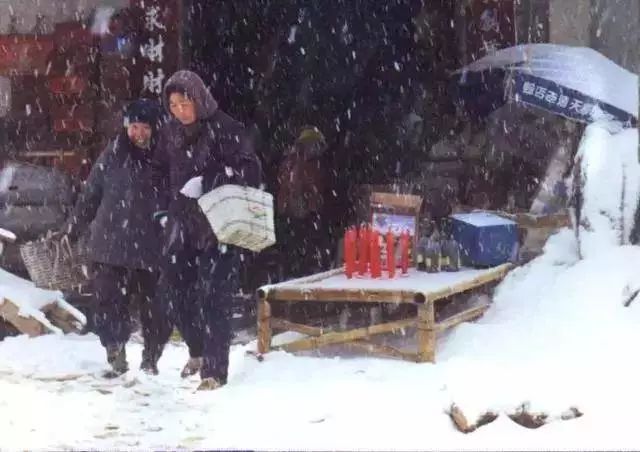 大雪中步行的老人,胳臂上挎著提兜兒,猜猜提兜兒里放的是啥?