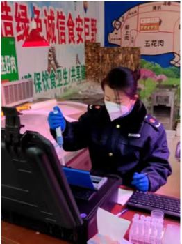 為了確保節日期間消費者“放心消費”、“安全消費”,不讓群眾“菜籃子”出問題,在嚴格食品市場檢查的同時,他們這次還讓快檢走向街頭,走進商超,主要是加強對大家密切關注的“農藥殘留”、“瘦肉精”等項目的快速檢驗,共計現場抽檢150例,檢查結果合格率為100%。