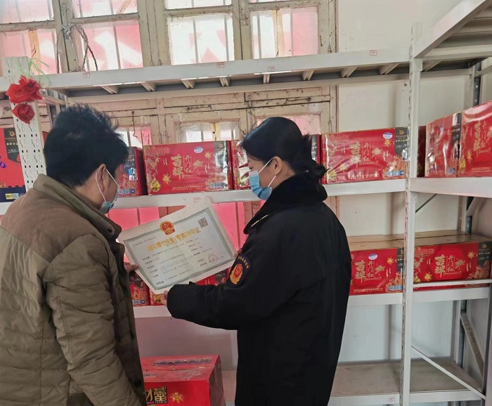 根據上級有關部門對元宵節日市場煙花爆竹等危險商品的管理規定和要求,執法人員加大對煙花爆竹經營的監管力度,對轄區各個商超或土產門市進行“拉網式”檢查,確保鎮駐地無經營煙花爆竹商戶,對有經營資質且符合經營條件的商戶進行不定時檢查,確保沒有“下店上住,前店后宅”,嚴查經營戶有無超標、違禁、非法產品經營等問題,從嚴從細堵塞各類市場安全漏洞。