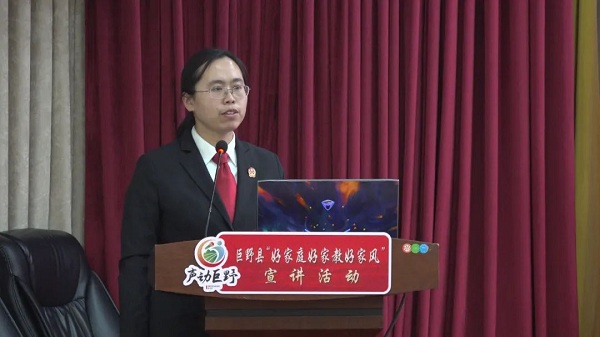 本報訊 二十大報告將家庭、家教、家風建設作為‘推進文化自信、自強,鑄就社會主義文化新輝煌’的重要內容,進一步凸顯了家庭在國家發展、民族進步、社會和諧中的基石作用……”來自巨野縣法院立案庭的員額法官、好家風宣講員程素萍正在為大家進行宣講。