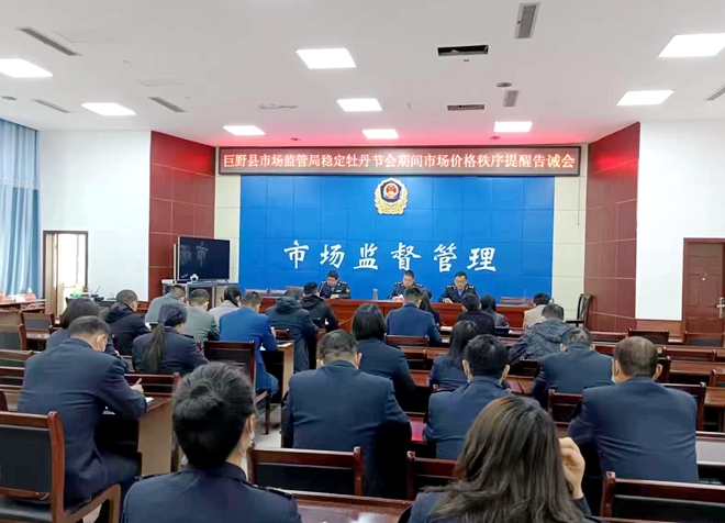 會上,先后宣讀了《2023菏澤牡丹節(jié)會市場運(yùn)行保障方案》涉及穩(wěn)定節(jié)會期間價格秩序的內(nèi)容、市委辦公室、市政府辦公室《關(guān)于做好牡丹節(jié)會期間市場價格秩序穩(wěn)定工作的通知》和《巨野縣市場監(jiān)督管理局關(guān)于穩(wěn)定牡丹節(jié)會期間市場價格秩序的提醒告誡函》,對穩(wěn)定牡丹節(jié)會期間市場價格秩序有關(guān)事項(xiàng)進(jìn)行了提醒告誡和詳細(xì)解讀。