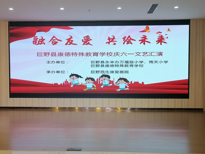 活動現場,李校長首先代表萬福路小學全體師生向孩子們送上美好的祝福,希望孩子們能健康快樂成長。隨后,萬福路小學的學生們為巨野縣康德特殊學校的孩子們獻上了精彩的節目,如情景劇《滿江紅》、舞蹈《祖國有我》等,巨野縣康德特殊學校的孩子們也為到場的萬福路小學師生演唱了《特別的人》、《愛的力量》等歌曲。最后,萬福路小學的學生們和巨野縣康德特殊學校的孩子們共同做游戲、互送禮物等。