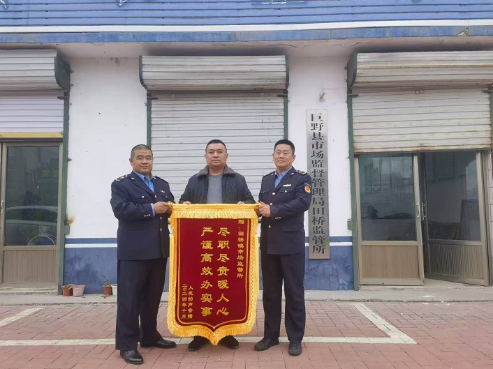 本報訊 近日,巨野縣市場監(jiān)管局田橋市場監(jiān)管所收到一面錦旗,這是王女士從千里之外的浙江寄來的,錦旗上繡“盡職盡責(zé)暖人心 嚴(yán)謹(jǐn)高效辦實事”,以表達(dá)其對巨野縣市場監(jiān)管局的感激之情。