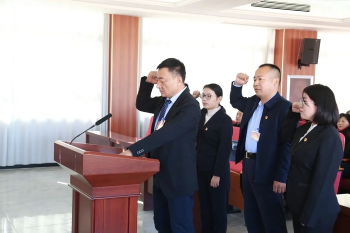 新當選的鎮人大副主席、副鎮長進行憲法宣誓。