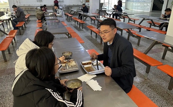 梁校長每天都在食堂和學生一起吃飯,親切地詢問同學們飯菜是否合口味,蔬菜是否新鮮,菜量是否足夠,并鼓勵他們有意見和建議可以直接向他提出來,叮囑他們不要挑食,要葷素搭配,才能在高中繁重的學習中茁壯成長。