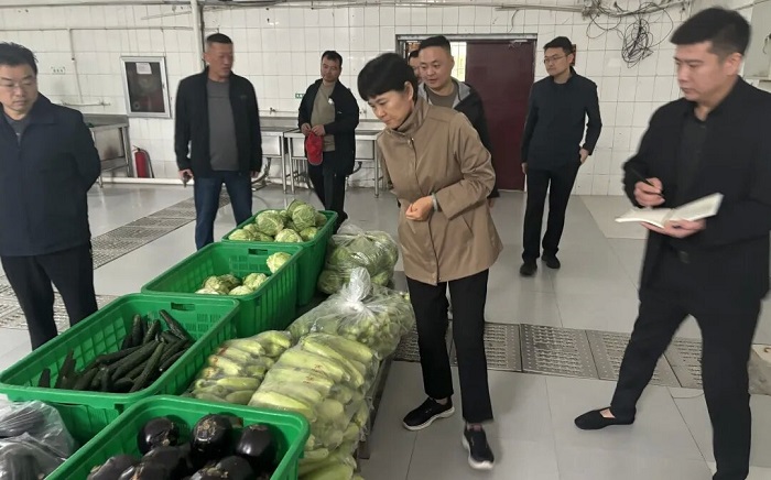 楊書記和梁校長調度后勤人員和食堂管理人員,檢查食堂食材原料和衛生情況。梁校長說:“食品安全,重于泰山。學生每天吃進嘴里的食物,背后是無數雙眼睛在把關。從食材的選購,每一棵青菜、每一塊肉,都必須來 自正規可靠的供應商,進行最嚴格的檢驗;加工過程從清洗、切配到烹飪,廚師們都得嚴守衛生標準,廚具餐具每餐必消毒,生熟嚴格分開,杜絕交叉污染。”梁校長還特別指出,服務人員的服務質量直接關系到學生的用餐體驗,給學生打飯時要耐心細致,對待學生要像對自己孩子一樣,學生可以通過給服務人員打分機制,對食堂服務人員的服務速度、態度、衛生情況等多方面進行評價,這些評價數據將直接反饋給學校總務處和食堂管理人員。
