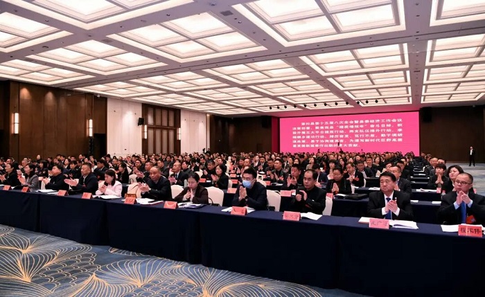 雄壯的國歌響徹整個會場。在委員們熱烈的掌聲中,縣委書記馮艷麗做重要講話。