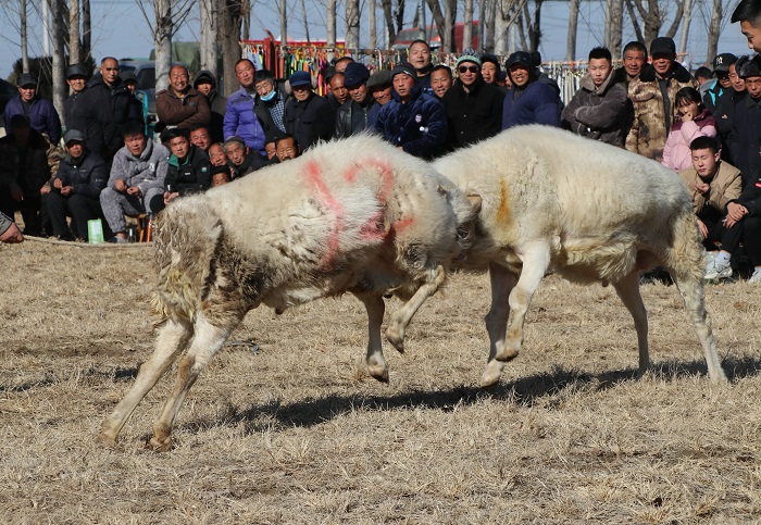 上午10點,隨著裁判員一聲令下,斗羊比賽正式拉開序幕,對陣雙方各自引領斗羊沖向對方,只見八蹄奮進,四角相撞,發出嘭嘭響聲,現場驚心動魄,扣人心弦,鼓掌聲、歡呼聲、喝彩聲不絕于耳,熱鬧非凡。