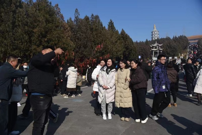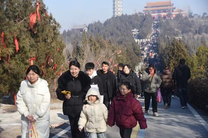 本報(bào)訊 1月29日,巨野縣核桃園鎮(zhèn)轄區(qū)的金山旅游區(qū)、青龍山旅游度假區(qū)、白虎山風(fēng)景區(qū)、前王莊石頭寨人氣爆棚,景區(qū)各個(gè)停車(chē)場(chǎng)爆滿(mǎn),景區(qū)附近的村莊到處都停滿(mǎn)了小汽車(chē),景區(qū)內(nèi)到處是人的海洋。有的進(jìn)山燒香、有的出來(lái)閑逛、有的在玻璃棧道上尋求刺激、有的和孩子們一起在天池里踏浪、也有的在石頭寨里感受農(nóng)耕生活快樂(lè)等 。