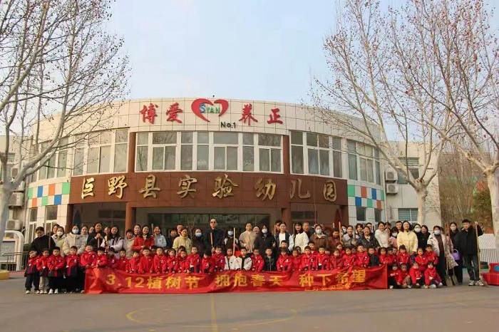 巨野縣實驗幼兒園開展植樹節活動。小朋友們分組協作,熱情高漲。
