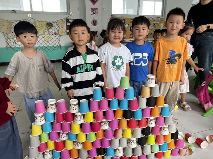 小朋友們進行了有趣的紙杯建構游戲,在與紙杯進行多次互動后,孩子們逐漸探索到紙杯搭建的技巧。他們大膽嘗試用不同的方法進行建構,作品內容越來越豐富。從原來的簡單堆疊到有主題有目的搭建,從獨自搭建到合作搭建,從單一造型到多種組合,孩子們在不斷嘗試、探索中,建構經驗逐步得到豐富。
