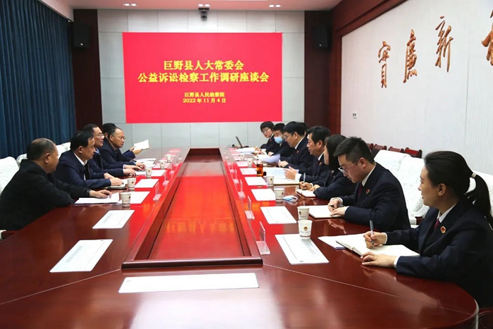 本報訊 為進一步維護國家利益和社會公共利益,全面推進公益訴訟工作做實、做強、做好。11月4日上午,巨野縣人大常委會副主任李現棠一行到巨野縣人民檢察院開展公益訴訟檢察工作專題調研,并召開座談會。巨野縣人民檢察院黨組書記、檢察長鄧奮學,副書記、副檢察長丁德剛及第四檢察部全體干警參加會議。
