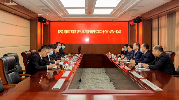 調研組一行實地參觀了法院院史館、科技審判庭、互聯網法庭等場所。