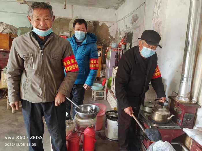 目前,全鎮20個行政村和社區都建立退伍軍人防止一氧化碳中毒宣傳隊。圖為李街村退伍軍人王金具、李士鈴等人在村民李華慶家中檢查煤炭爐子時的情景。
