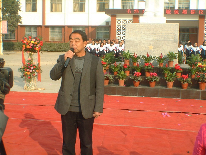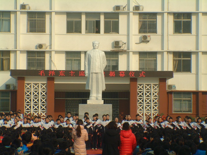 據趙校長介紹:2002年,巨野師范學校與巨野第一中學合并,2010年巨野縣人民政府決定舊城改造。這尊毛主席雕像遷移至巨野縣第一中學校園教學樓前廣場,并舉行了隆重的落座揭幕儀式,原《齊魯晚報·今日巨野》現《今日巨野》報等新聞媒體和紅色網站做了重點報道。巨野師范學校和巨野高級中學,在毛主席的影響下培育出一批又一批又紅又專的人才,這尊毛主席塑像也成為遠近聞名的、巨野縣唯一的一處中小學生、社會各界愛黨、愛國、愛社會主義的教育基地。