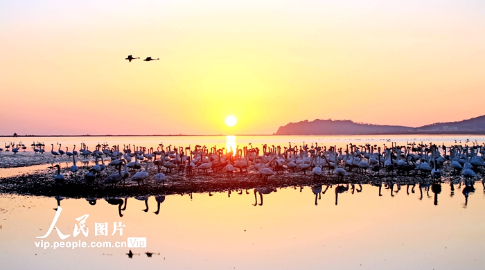 人民網(wǎng)訊 11月17日清晨,在山東榮成天鵝湖,成群大天鵝迎著日出游弋、追逐、飛翔,景美如畫(huà)。